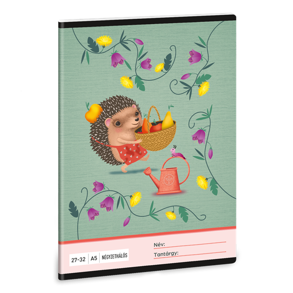 A5 méretű négyzethálós füzet. 32 lapos, belseje 75 gr-os papírból. Borítója 250 gr-os műnyomó kartonra lekerekített sarkokkal, fényes fóliázással, 4 szín nyomással készült.