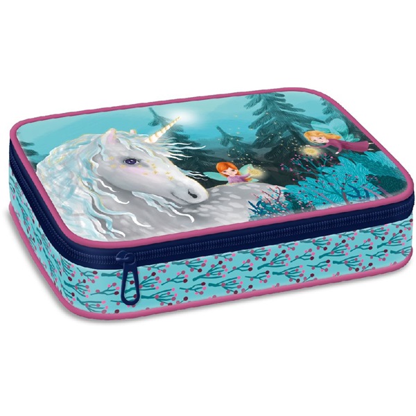 Többszintes, töltetlen, cipzáras tolltartó. Belül textillel bevont merev lapokkal, gumis kialakítással 30 ceruza számára az írószerek tárolásához és egy cipzáras belső zsebbel.