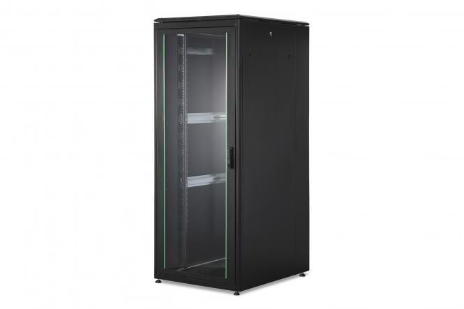 Az Unique sorozat hálózati szekrényeit különösen kényelmes és rugalmas hálózati kábelezésre tervezték és gyártották. A kifinomult optimalizálások piackonform stabilitást és maximális rugalmasságot biztosítanak. A csavarozott 483 mm-es (19 hüvelykes) vakpanelekkel nyitható moduláris alapkeret elegendő helyet kínál mindenféle kábel számára. Ezenkívül a szekrény tetején és alján, valamint az alapkeret hátulján oldalsó, kefés kábelbevezetők találhatók. A hátsó ajtó felett és alatt (26U-tól) található hátsó kefecsíkok széleskörű alkalmazási lehetőségeket tesznek lehetővé. A nagyméretű függőleges kábelcsatornák, kábelvezetési segédeszközökkel és fedéllel, amelyek az elejére vannak felszerelve (800 mm-es szekrényszélességtől), tökéletesen kiegészítik a hálózati szekrény sokoldalú tulajdonságait. Belül két pár hajlított és horganyzott 483 mm-es (19 hüvelykes) profilsín található, amelyek ellentétes irányban leolvasható magassági egységekkel vannak ellátva. Ezek fokozatmentesen állíthatók, és a szekrényben található további mélységi támaszokhoz csatlakoznak. Minden szekrény robusztus acélszerkezet, legfeljebb 1,5 mm vastag acéllemezből. A színezés elektrosztatikus porbevonat formájában történik, standard szürke (RAL 7035) és fekete (RAL 9005) színekben. A moduláris, zárható és levehető oldalsó panelek és ajtók javítják a hozzáférhetőséget. Az ajtózsanérok cserélhetők. Továbbá a szekrények szükség esetén teljesen szétszerelhetők a leszerelhető kialakításnak köszönhetően. Az alkalmazástól függően minden DIGITUS® Unique hálózati szekrény szerverszekrényként is használható, figyelembe véve olyan tényezőket, mint a beépített alkatrészek súlya és hőfejlődése. Az ilyen változatokban a perforált acéllemez ajtók beépítése biztosítja a beépített alkatrészek jobb passzív hűtését. Például a DIGITUS® által szerverszekrényként definiált modellt a Unique Server-N sorozat standard konfigurációjában hátsó PDU konzolok egészítik ki.