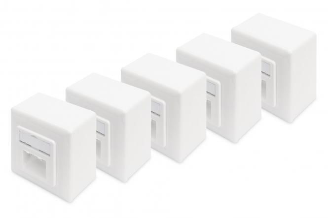 A DIGITUS® árnyékolt CAT 6 hálózati aljzatai CAT 6 EIA/TIA 568 és ISO/IEC 11801, EN 50173 tanúsítvánnyal rendelkeznek. A kábelezés LSA szalagokon keresztül történik, amelyek EIA/TIA 568 B szerint színkódoltak, vízszintes kábelbevezetéssel. Minden DIGITUS® hálózati aljzat süllyesztett vagy felületre szerelhető kivitelben kapható.