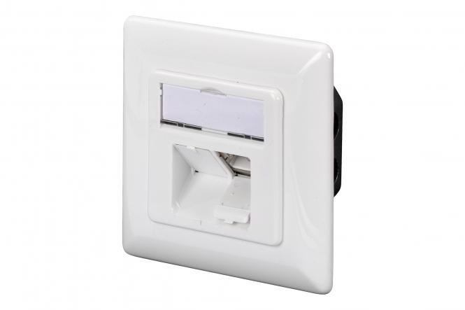 A DIGITUS® árnyékolt CAT 6 hálózati aljzatai CAT 6 EIA/TIA 568 és ISO/IEC 11801, EN 50173 tanúsítvánnyal rendelkeznek. A kábelezés LSA szalagokon keresztül történik, amelyek EIA/TIA 568 B szerint színkódoltak, vízszintes kábelbevezetéssel. Minden DIGITUS® hálózati aljzat süllyesztett vagy felületre szerelhető kivitelben kapható.