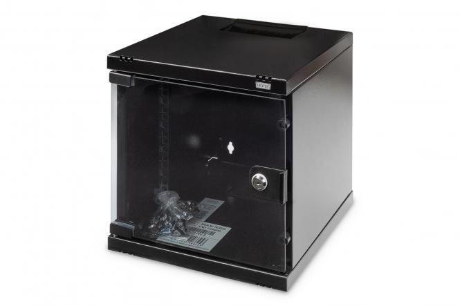Akár otthon, akár irodában, akár korlátozott helyű alelosztókban: a kompakt, 254 mm-es (10 hüvelykes) megoldásokkal bárhol telepítheti hálózatát. A három magassági egységben (6U, 9U, 12U) kapható fali szekrények teljes üvegajtóval és felül és alul kefés kábelbevezetővel vannak felszerelve. Belül egy pár horganyzott, 254 mm-es (10 hüvelykes) profilsín található, amelyek olvasható magassági egységekkel vannak ellátva. Ezek mélységben állíthatók. Minden szekrény robusztus acélszerkezet, amely akár 1,5 mm vastag acéllemezből készül. A színezés elektrosztatikus porfestés formájában történik, standard színekben: szürke (RAL 7035) és fekete (RAL 9005). Az ajtópántok cserélhetők. Ezenkívül a szekrények szükség esetén teljesen szétszerelhetők a leszerelhető kialakításnak köszönhetően.