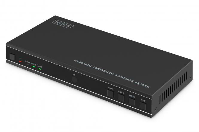 A videofal vezérlő lehetővé teszi akár négy 4K UHD kijelzőből álló videófal lenyűgöző megjelenítését. A rugalmas kijelzőformációknak (1x1, 2x1, 3x1, 4x1, 1x2, 1x3, 1x4, 2x2) köszönhetően testreszabhatja a beállításokat – ideális professzionális prezentációkhoz, reklámkiállításokhoz vagy megfigyelő alkalmazásokhoz. A nagy felbontású jelfeldolgozás maximálisan 4K/60Hz bemeneti felbontást biztosít HDMI (DMI 2.0) vagy USB-C (DP 1.2a) csatlakozón keresztül. A videofal 4K/30Hz felbontásban jelenik meg HDMI-n keresztül, garantálva a borotvaéles képeket. Az integrált hangkivonó lehetővé teszi a hangjel külön kimenetét 3,5 mm-es analóg sztereó vagy digitális S/PDIF csatlakozón keresztül – tökéletes külső hangszórókhoz. A 180°-os képforgatásnak köszönhetően a videofal mennyezeti telepítésekhez is használható, míg a távirányítóval, közvetlenül a készüléken vagy RS232 interfészen keresztül történő intuitív vezérlés maximális használati kényelmet biztosít. A kijelzők felbontása is könnyen módosítható. A kompakt kialakítás és a falra szerelhetőség ideális megoldást kínál a vezérlő számára a professzionális szektor sokoldalú alkalmazásaihoz.