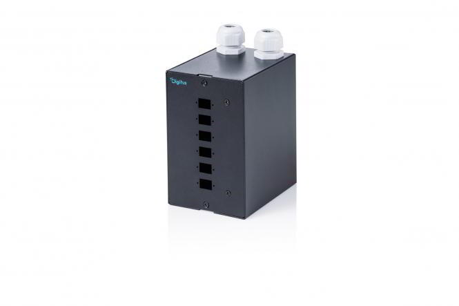 A DIN sínre szerelhető toldóelosztó robusztus és megbízható megoldást kínál az optikai kábeles csatlakozások strukturált lezárására és elosztására. Szabványosított TS35 DIN sínekre való szereléshez fejlesztették ki, és lehetővé teszi az optikai kábeles csatlakozások biztonságos és hatékony integrálását szekrényekbe és elosztóházakba. Ez a kialakítás megkönnyíti a telepítést, miközben biztosítja a megfelelő szálvezetést és a szükséges hajlítási sugár betartását. Az integrált kábelbevezetők biztosítják a strukturált kábelvezetést és csökkentik az optikai szálak mechanikai terhelését. A modul gyorsan és egyszerűen integrálható vezérlőszekrényekbe, automatizálási rendszerekbe vagy ipari elosztórendszerekbe további szerelési tartozékok nélkül. A kialakítás maximalizálja a helykihasználást, és támogatja a strukturált kábelkezelést a professzionális hálózati telepítésekben.