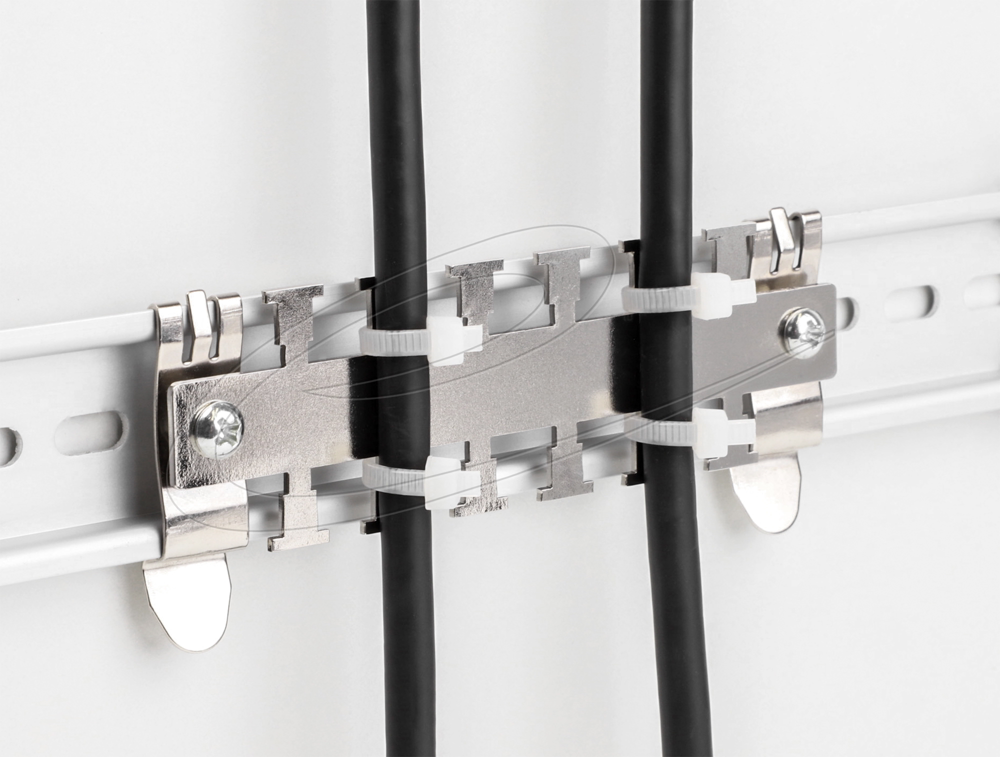 Különböző kábelek, vezetékek és csövek rögzíthetők a sínre kábelkötegelővel vagy tépőzárás rögzítővel, hogy átlátható és rendszerezett kábelelrendezést alakítsunk ki. Emellett biztosítja a kábelek feszültségmentesítését is.