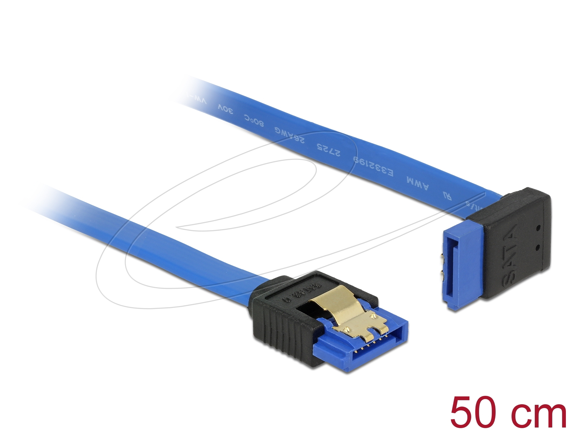 Delock - SATA-kábel, 6 Gb/s, hüvely, egyenes > SATA hüvely, felfelé ívelt, 50 cm, kék aranyszínu kapcs - 84997